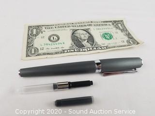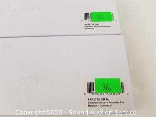 Lot Details: Gunmetal finish. Model AP12730 GM M and AP121735 GM. Fountain pen is medium nib, cartridge or piston fill. Brand new, do not appear to have ever been used. Come with original cases, boxes and instructions. 5-1/4" length.