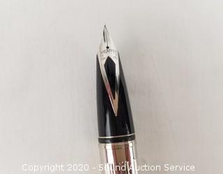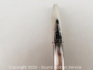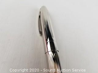 Lot Details: Chrome pinstripe finish, 18k white gold nib. Comes with original case. 5-3/8" length. White dot.