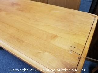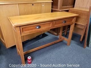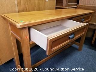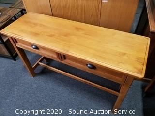 Lot #0008: Lovely 2-Drawer Solid Natural Wood Console Table