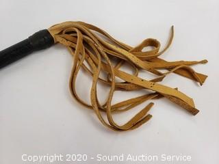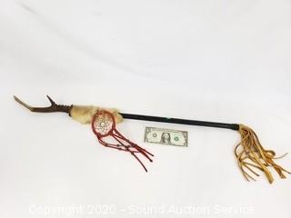 Lot Details: Has real fur and antler accents. Antler has been carved down into a pointed blade. Has a dream catcher attached. Approx. 33" long.