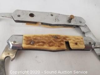 Lot Details: Compass is Boy Scouts, multi tool manicure kit and utensil multi tool (handle is loose), monocular is a Vivitar PV series 8x21, lantern is American Camper, uses 1 gallon propane tanks, single mantle.