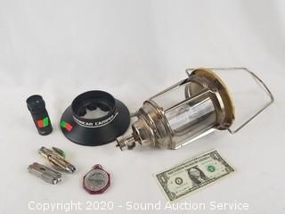 Lot #0341: Propane Lantern, Monocular, Multi Tools & Compass