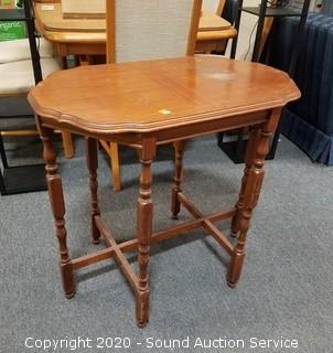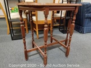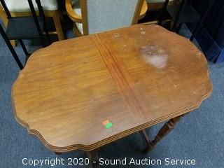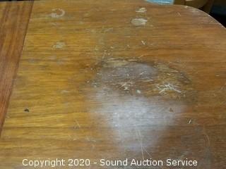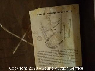 Lot Details: Some wear to the finish, has a large wear spot on the top. Original assembly instructions on the bottom. 30" x 32" x 20".