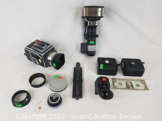 Lot #0169: Vtg. Hasselblad Camera w/Lens, Flash & Accessories
