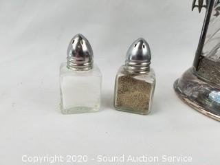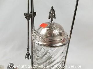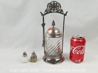 Lot #0143: Vtg. Silver Plate Pickle Jar w/Salt & Pepper
