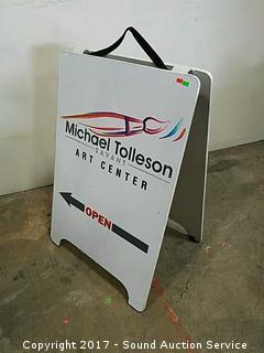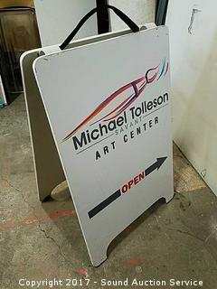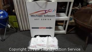 Lot #0163:     Advertising Sandwich Board & Michael Tolleson Art Gallery T-Shirts