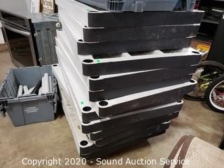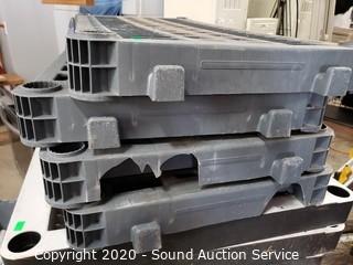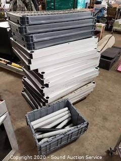 Lot Details: 18.5" poles, (14) shelves are 24" x 36", (4) are 18" x 36". A few have some damage. Enough posts to make 2 complete 4-tier shelves.