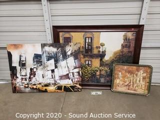 Lot Details: One is a giclee, 47.5" x 39.5", one is printed on canvas board, 46" x 36", other is an old framed print by F.Marriott 1922, 17" x 20".