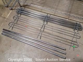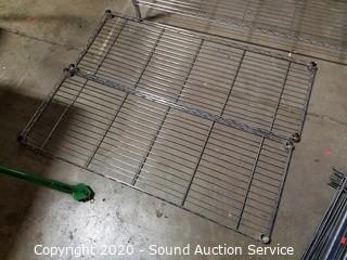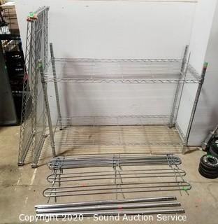 Lot Details: Partially assembled with 2 shelves, missing one of the rods to make it taller. Only enough shelf brackets for 2 shelves. Comes with 6 shelf guards. Currently assembled to be 35" x 48" x 18".