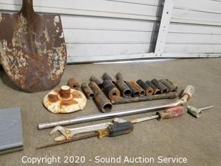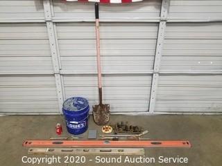 Lot #0268: 4ft & 6ft Levels, Shovel & Bucket w/Sockets