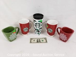 Lot #0346: 5 Like New Starbucks Holiday Coffee Mugs