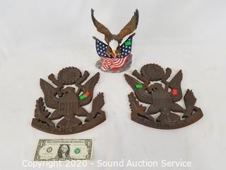 Lot #0227: Cast Iron & Porcelain USA Eagle Decor