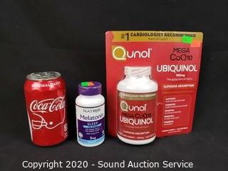Lot Details: Both are sealed. Includes 5mg melatonin 550 tablets and 100mg Qunol 120 tablets.