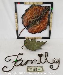 Lot #0222: Metal Art Leaf Decor & Family Key Rack
