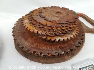 Lot Details: Many of the circular saw blades have some rust.5-3/4" to 10". One of the 4" blades is a Concrete Grinding Level blade.