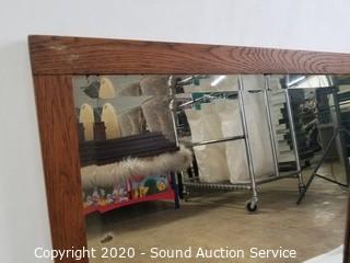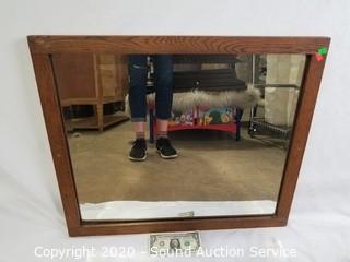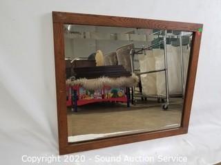 Lot #0021: Vtg. Quarter Sawn Oak Beveled Hanging Mirror