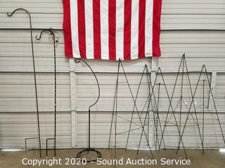 Lot #0149: Wrought Iron Shepherds Hooks, Hanger & Trellises