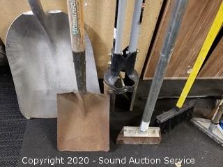Lot Details: Includes post hole digger, snow shovel, digging bar, water control shutoff T, kitchen broom, square shovel, (2) 8" scraper and (2) vehicle cleaning brushes.