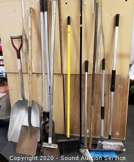 Lot #0314: 10pc Various Yard Tools & Brooms