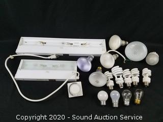 Lot #0298: 15 Flood, CFL & Standard Light Bulbs & Bar Lights