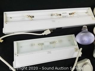 Lot Details: Includes flood light bulbs, CFL, standard light bulbs and under cabinet bar lights (1" x 13" x 5", 13-22)