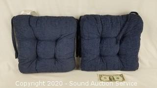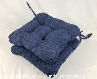 Lot #0171: 2 Blue Memory Foam Cluster Tie-On Chair Pads