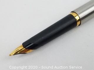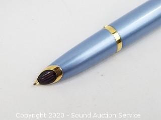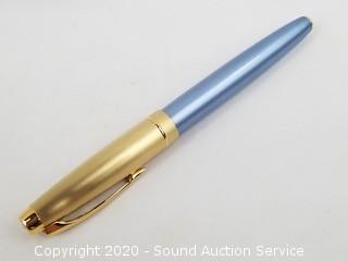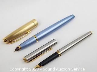 Lot Details: One is steel finish with gold appointments, cartridge fill, 5-1/8" length, other is blue and gold tone finish, cartridge fill, 5-1/2" length. Both have been used, in good condition.