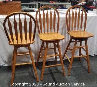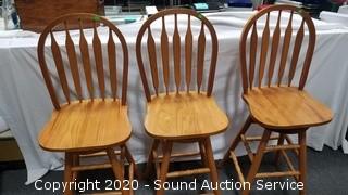 Lot #0010: 3 Oak Counter Height Chairs