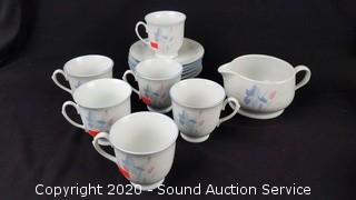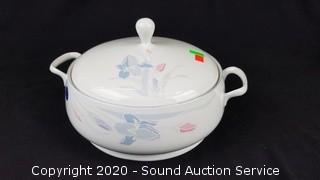 Lot Details:  Includes 10 dinner plates, 11 snack plates,  10 cereal bowls, 6 saucers, 6 cups, 8"  covered server, (2) 9" serving bowls, gravy  boat and 14" oval platter.