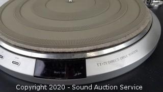 Lot Details: TT-71 direct drive system, works. Missing the arm rest and needle dust cover. 7" x 19" x 15".