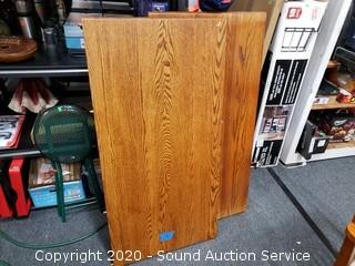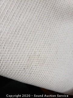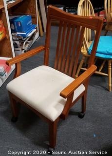 Lot Details: Chairs are rolling. 28" H x 48" Dia. with two 24" leaves. A few minor scuffs and scratches on the chairs, one has a faint stain, otherwise in great condition.