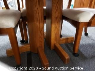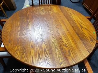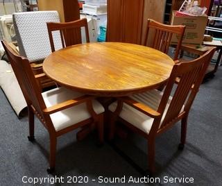 Lot #0006: Nice Oak Round Dining Table w/4 Chairs & Leaves