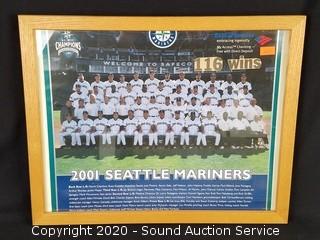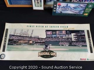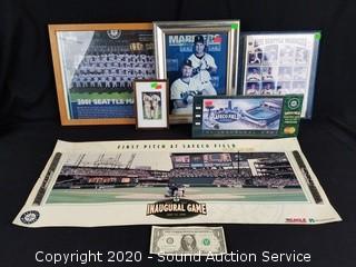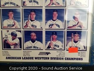 Lot Details: Includes 1995 American League Western Division Champions, Safeco Field "The Inaugural Game" poster and sign (poster has some holes), 2001 team photo, framed picture of Ken Griffey and Ken Griffey Jr. and Jay Buhner/Edgar Martinez framed magazine cover. Smallest is 6.25" x 4.25", largest us 28" x 12".