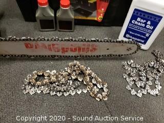 Lot Details: Comes with various chain and oil. Started up, ran briefly and then stopped.