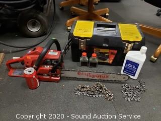 Lot #0338: Shindiawa 16" Chainsaw & Toolbox w/Chains & Acc.