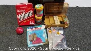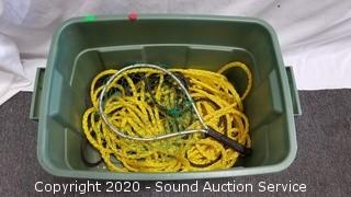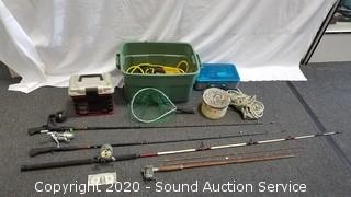 Lot #0335: Various Fishing Poles, Tackle, Rope & Anchor