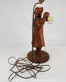 Lot #0008: Vintage Carved Wood Character Table Lamp