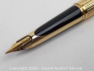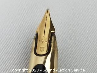 Lot Details: 14k gold nib. Comes with replacement cartridge, manual and original case. Serial A49565. 5-1/4" length.