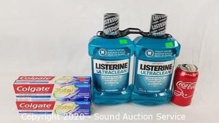 Lot #0083: 2pk Listerine & 2 Tubes Colgate Toothpaste