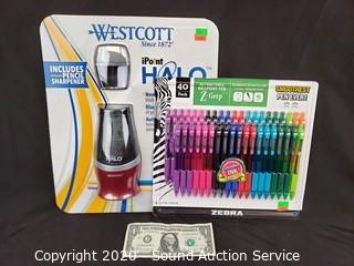 Lot #0196: 40pk Zebra Pens & Westcott Halo Pencil Sharpener