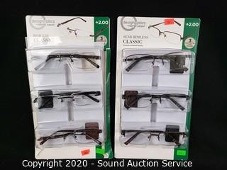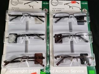 Lot #0270: 6 Design Optics +2.0 Reading Glasses