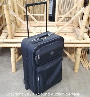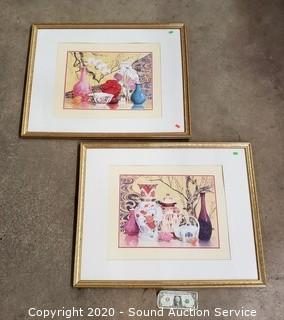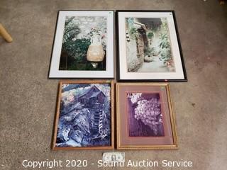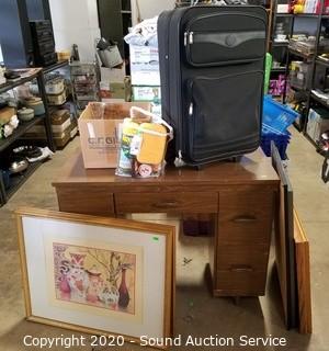 Lot Details: Lewis & Hyde Soft Side 26" Rolling Luggage, 19pc Drinkware, Shoe Care Products, 3 Terracotta Vase & Cabin Wall Decor Artwork and Gloria Eriksen Colorful Still Life Artwork Prints.
