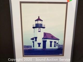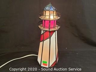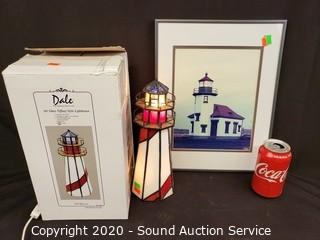 Lot #0204: Dale Tiffany Art Glass Lighthouse Lamp & Picture