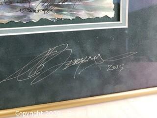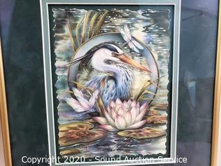 Lot Details: Artwork is by artist Jody Bergsma titled "Rising Reality" with artist information on the back, 16" x 12". Metal art fish is made in Mexico with original $72 price tag, 16" x 12". Wreath is 20" x 16".