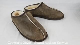 Lot #0061: New Men's Brown Shearling Clog Slippers S:10