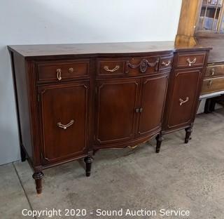 Lot #0003: Vtg. Mahogany Finish Bow Front Buffet