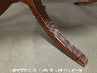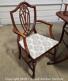 Lot Details: Comes with (3) 12" leaves and felt table top cover. Chairs are shield back. Various wear to the finish. 42" x 63" x 30".