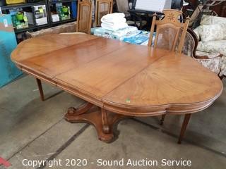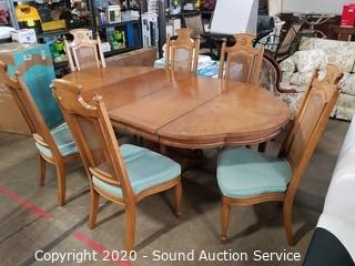 Lot #0018: Vtg. Pecan Finish Dining Table w/6 Chairs