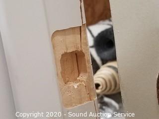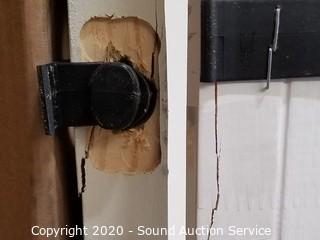 Lot Details: Jamb and door knob hole have a crack, and inner jamb trim has come free at the bottom, otherwise like new. 4.5" jamb.