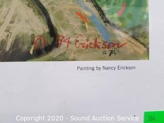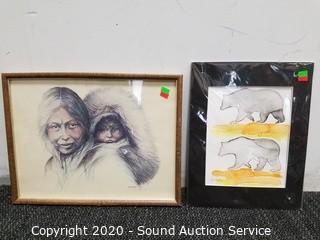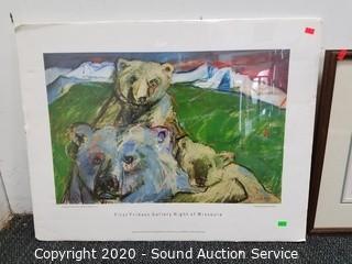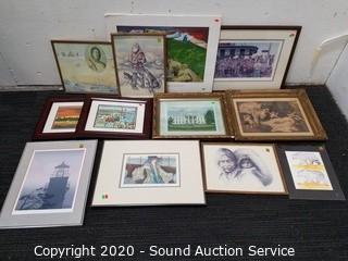 Lot Details: Includes M.Johnson market lithograph 18" x 27", Artwork Gallery Print by Nancy Erickson 26.5" x 20.5", Roald Amundson artwork 20" x 14", Barbara A. Wood signed limited lithograph #161/975 22" x 16", vintage cherub print 21" x 17", 1924 White House print by Beck 19" x 15.5", David Trask signed limited serigraph #242/950 titled "The Cape" with artist information on the back 20" x 16", Harry Bonath print and cityscape print 17" x 14", 2 Doug Lindstrand Alaskan Eskimo certified prints 17" x 13" and original Anna Nata Alaskan bear watercolor 11" x 14".